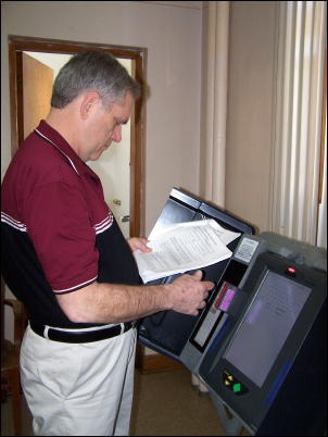 Calhoun Clerk Richard Kirby does Early voting in person will begin April 23 during regular business hours of the County Clerks office, and on Saturday May 3rd, 9 to 5 and ending Saturday May 10th at 5 p.m. Early voting in person can be done by anyone without any excuse, allowing voters a better opportunity to vote, said Kirby. There will be no early voting on Monday May 12th, 2008. Absentee voting by mail, contact the Clerk's Office for an application or down load one from the Secretary of State's Web Site and submit to the Clerk. Some reasons to vote by mail are, personal or business travel, illness, injury (doctors name required), physical disability, incarceration, uniformed services member or spouse or dependent, employment and college student.