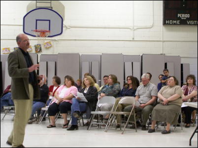 Board members enjoy student presentations Projects, activities and accomplishments were highlighted by the Arnoldsburg School's Local School Improvement Council Tuesday evening, a presentation before the local school board. Arnoldsburg principal Bryan Sterns said he was proud of his staff and parents, many of which are involved in school activities and projects. Dottie Nemitz presented a video produced by the school's students with the help of Jim Sullivan, which helped with the school's fundraising to purchase and install new lockers, a $15,000 project. Arnoldsburg teacher Tami Allen told board members about the school's students reaching education benchmarks, acknowledging their accomplishments. A number of other LSIC members discussed WESTEST data, good school attendance, successful fundraising efforts of the PTO, Heads Up, and other accomplishments. The 2008-2009 School Calendar was approved. Early dismissal was approved for Professional Development to Implement County Improvement Plan, tentative dates April 25, May 23, June 6. The board went into executive session for 20 minutes related to personnel matters. The board approved the following personnel actions: - Job Postings: Title I Supervisor (Central Office) 07-08; Instructional Technology Supervisor (County) 07-08; Director of School Improvement (Central Office) 07-08 - Amended; Custodian III (Pleasant Hill Elementary) 08-09; Custodian III (Calhoun Middle/High School) 08-09; Cook III/Cafeteria Manager (Pleasant Hill Elementary) 08-09; Science Teacher (Includes Biology) (Calhoun Middle/High School) 08-09. - Employment: Probationary Contracts for Marisha Collins and Wilbert Kerby; Roy Davidson, Richard Parsons, Mathew Taylor, Kevin Boak, Jason Walker, Shelly Mace, Lisa Walker, Daniel Beall, Bonnie Sands, Melanie Garrett, Ashley Fox, Samantha Jarvis Bobbi Bell, Robyn Ellison, Tami Allen, Patricia Riddle, Whitney Ritchie, Ernest Tingler. - Continuing Contracts: Barry Miller, Shelly Ratliff, Kristin Smith, Adam O'Harrow, Seana Miller, Jamie Wagoner, Connie Summers, Teresa Goodnight, Amber Ganoe, Casey Harris, Melissa Jones, Joyce Morgan. Mrs. Dale moved and Mr. Wilson seconded that Special Education Supervisor contract be changed to 240 days, with the motion carrying unanimously. - Administrative Contracts: Kathryn Nichols - Special Education Supervisor; Patricia Riddle - Director of Finance; Karen Kirby - Principal - Calhoun Middle/High School; Carla Taylor - Assistant Principal - Calhoun Middle/High; School Bryan Sterns - Principal - Arnoldsburg Elementary; Jacqueline Shimer - Principal - Pleasant Hill Elementary. - Employee Transfer: Melanie Garrett - Elementary Teacher (CMHS) 08-09. - Transportation Request: WVU-P, Parkersburg, College Tour, April 29, 2008, Melissa Jones; Bridgeport High School, Academic Team, April 19, 2008, Norma Randall-Myers. - Finance: 2008-2009 Budget Hearing; 2008-2009 Budget Approval. School board members expressed appreciation to Arnoldsburg school faculty, staff and students. Board president Lee Evans spoke about funding for new wrestling mat. The next board meeting is May 5th at Mt. Zion.