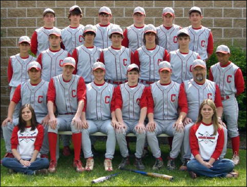 ![]() CHS BASEBALL 2008 - First Row: Amara Yoak and Ashley Houchin (Statisticians) Second Row: Matt Walker (Assistant Coach), Josh DeWeese, Jeff Goodrich, Kam Reip, Matt Houchin, and Coach Jeff Houchin. Third Row: Tyler Bennett, Greg Myers, Justin Gerwig, Jordan Panarello, Nick Whytsell, Aaron Yoak, and Daniel Simms. Last Row: Preston Milan, Dennis Dye, Drew Williams, Jeremy Conley, Austin Moore, and Randy Fluharty.
