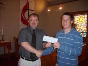 ![]() Rev. Rick Swearengin awards Matthew Houchin with scholarship