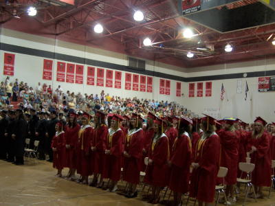 School teachers and administrators lead processional (left) Calhoun High School graduated 76 students last night at Mt. Zion before a packed audience of parents, family members, students and well-wishers. See earlier Herald story. Here's a few photos of the event, a keepsake for the Class of 2008