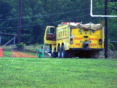 ![]() The Grantsville Volunteer Fire Department washed the mud off the walking trail Monday evening at Wayne Underwood Field. Local clean-up efforts continued this week from last weeks flood, which did minimal damage to low lying areas close to the Little Kanawha River. Wayne Underwood Field was completely covered. The Calhoun County Wood Festival appreciates the efforts of the Grantsville Volunteer Fire Department for not only helping with the walking path, but assisting with Saturday's mud bog and fireworks.