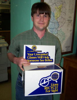 ![]() Lion Jason Nettles displays collection box The Grantsville Lion's Club has a number of donation boxes around the county to collect old eyeglasses that are re-cycled and put to good use again. The Lions Club is an organization with a longtime history of assisting individuals who cannot afford glasses If you have used prescription or nonprescription glasses or sunglasses in your drawers, desks, or closets, you can donate them now. Children's glasses are especially needed. Both plastic and metal frames are accepted.