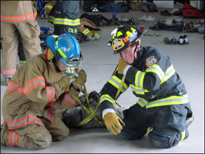 ![]() Firefighters practice dragging technique