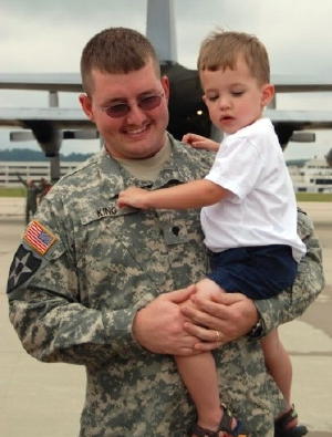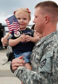 (L) Sgt. Bryon Norman's wife Bridget and daughter Hailey Proud Gilmer County family and friends welcomed home two of their soldiers from Iraq, Sunday. Sgt. Bryon Norman and Spc. Tim King are members of the West Virginia Army National Guard - 821st Engineer Company that left about a year ago for deployment to Iraq. Terri Thomas and Julie Beckner, sisters of Sgt. Norman and cousins of Spc. King proudly submitted these photos.