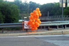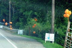 Photos courtesy of Judy Powell Dozens of orange balloons and signs lined Rt. 5 from the Grantsville bridge to the home of Joan and Steve Satterfield Wednesday afternoon. The occasion was a "Welcome Home" for Joan after an extended stay at the Cleveland Clinic for Acute Myelogenous Leukemia treatment. See February '08 article Satterfield Faces Illness