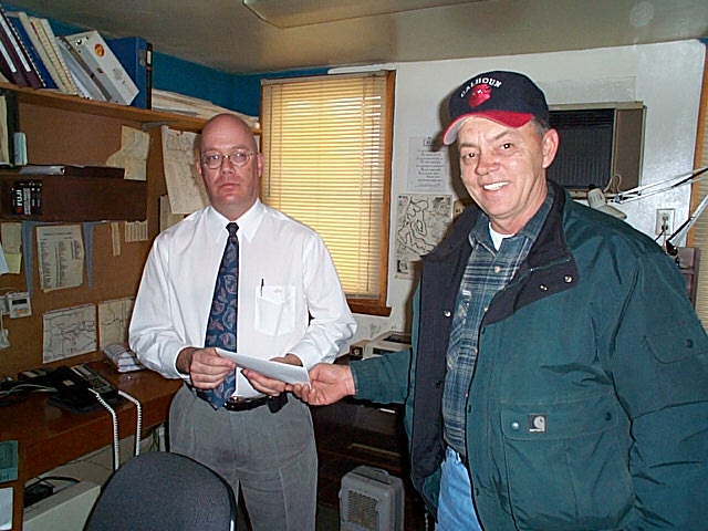![]() Delegate Bill Stemple presents $10,000 grant to Barry Pitts, 911 Director