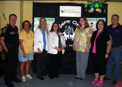 Submitted by Terri Lilly Even though we are in the heart of summer, there are still colds and flu circulating throughout our area. Staff at A Small World Daycare, owned and operated by Joyce Frashure and Rose Frashure, along with the Northern WV Rural Health Education Center (NWVRHEC) Region 2 teamed up with the West Virginia University Extension Office in hopes that some fun education will go a long way in keeping children and staff healthy. The WVU Extension office, represented by Jenny Post, Extension Agent, Gilmer; Bessie Welch, Program Assistant, Gilmer; and Craig Bode, 4-H Program Assistant, Doddridge County presented the children with Germ City: Clean Hands, Healthy People on July 22, 2008. This is a program designed to teach children how germs move from person to person and how proper hand washing can help prevent the spread of illness. The Extension office was assisted by Amanda Burgoon, a medical student from WVSOM doing her rural rotation with Dr. Hilary Miller and Christina Gherke, a PA student from AB doing her rotation with Dr. Linnon at Gilmer Primary Care. Both students are doing their rotation through the NWVRHEC Region 2 office. The children were also very pleasantly surprised when Sheriff Mickey Metz made a special visit to assist with this worthwhile endeavor. Sheriff Metz passed out Badge stickers to all the children at the end of the program. The children were given a "germ lotion" to show how bacteria and other germs can stick to your hands. The ordinary lotion was given to each child to rub into their hands until it was no longer visible. Then each child entered a small room (resembling a tent) lit by blacklights, which let them clearly see the "germs" on their hands. Then each participant was asked to wash their hands and return to see how many germs were still left even though they had washed. The purpose is to show the importance of thorough hand washing and how germs can remain behind if you don't wash properly. To learn more about Germ City, contact Jennifer Post, WVU Extension agent, at the Gilmer County office of the WVU Extension Service at 201 N. Court Street, Glenville, WV 2635, or call 462-7061. The NWVRHEC would like to thank Miss Joyce and Miss Rose for the participation from A Small World Daycare and for the hospitality shown to the students that were there to assist. Amanda Burgoon has been on an extended rotation and has been very involved in the community. When the NWVRHEC contacted Dr. Miller, she had the following to say about Student Dr. Burgoon, " Student Dr. Burgoon is doing a fine job. The first rotation is always a difficult one. Not only are you moved from an academic setting to a clinical one, but the learning experience changes as you learn in a clinical setting. Physicians are trained by working with and emulating more experienced physicians. This is how our profession has worked for hundreds of years. I feel it is every physician's duty to give back and perpetuate that process by teaching. Many of my patients enjoy the numerous students I train and it makes a more rewarding visit for the patient because they are contributing to the learning of a future physician." These students are required to do community service while training to be doctors, nurses, dentists, pharmacists, physician assistants, physical therapists, dental hygienists, and technicians. Their work in rural communities helps people learn about ways to improve their health - engage in regular exercise, eat healthy foods, quit smoking, ATV safety, diabetes and heart disease prevention - and a host of other health related issues. The consortium that covers Gilmer County is NWVRHEC, Region 2. This region also covers Wood (Williamstown), Calhoun, Doddridge, Pleasants, Ritchie, Wirt, and Tyler. RHEC takes health science students from different medical fields and places them in rural settings under a preceptor. The students are required to do rural rotations before being eligible to graduate. RHEC also provides housing for students when necessary. Student housing is fully furnished with cable and internet provided. The goal of the organization when bringing students into the rural areas is to retain health care professionals to practice in medically under-served areas such as the eight counties listed above. |