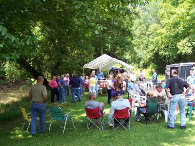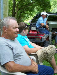 ![]() "Some of those horses knew how to swim, even in the current," he said. McCormick grew up on lower Barnes Run in Roane County. "The old church was a sacred place," said Duskey, who said the Baptist church was "stern and strict." "When they would have a revival you couldn't find a place to stand," he said. "You could count the Model A Fords on one hand, and the rest got there the best way they could from Little Rowel, Beaver Dam and Honey Run." The Bell Fish and Pickle Company was there Sunday, which includes not only fish, taters and pickles, but tents and reunion equipment. The gathering enjoyed afternoon preaching, singing and the spread on the long table.