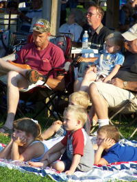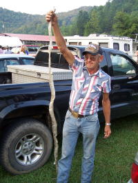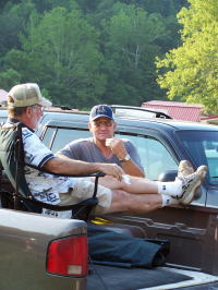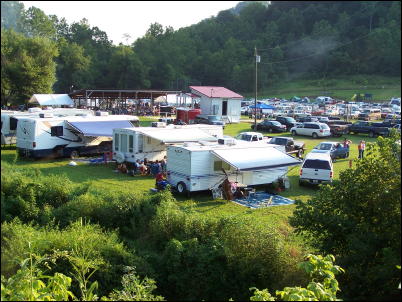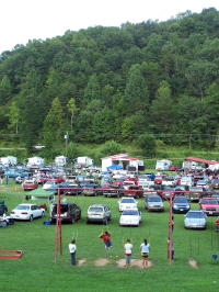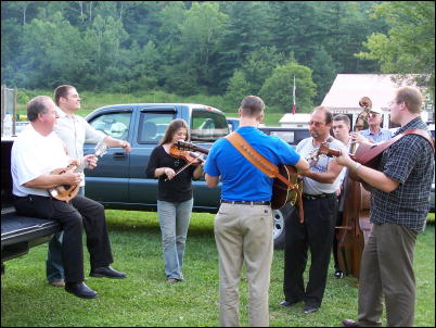 ... while the Vaughan Family practices backstage Hur Herald Photos By Bob Weaver A big crowd attended Saturday's 11th Annual Bluegrass Festival at Chloe, sponsored by the Upper West Fork Volunteer Fire Department. Fire Chief Randy Perkins said "We had some really good bluegrass bands this year, and the weather went along." Bluegrass is popular in Calhoun and most of West Virginia, with its roots in Irish, Scottish and English traditional music. In bluegrass, as in jazz, each instrument takes a turn playing the melody and improvising around it, while the others revert to "backing." Traditional bluegrass is typically based around acoustic stringed instruments, such as acoustic guitar, banjo, fiddle, and upright bass, with or without vocals. Bluegrass artists created some unique sounds in the West Fork Valley during the festival, which concluded with a fireworks display.