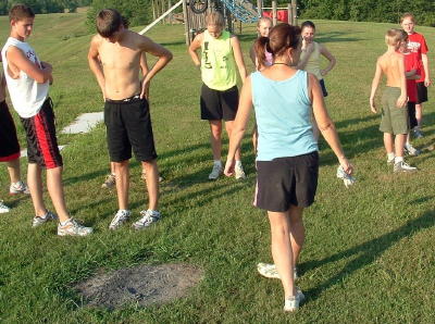 ![]() Coach Melinda Fitzwater talks to runners before the start of the timed run