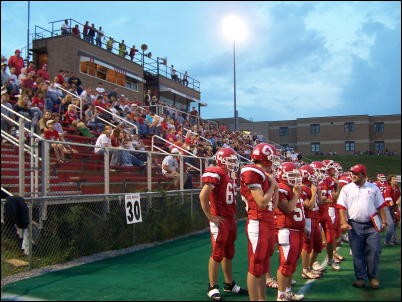 ![]() Backing Fluharty for the Red Devils was Daniel Sims, who had 65 yards on 10 carries, Moore with 43 yards on three carries, Darrenger Fluharty with 32 yards on five carries and Conley with 26 yards on six carries. For the most part Calhoun got rid of the penalty bug but still lost 45 yards to flags. The Red Devils also cut down on fumbles losing only one. They had six bobbles but a lot of them came in the second half when the second and third team offense was in the game. The one area where Calhoun was vulnerable was on pass defense. Although solid tackling kept the Bulldogs from breaking many big plays - the exception was a 63-yard pass from Curtis Anderson to Zachary Holden - Doddridge still gained 153 yards on 11 of 25 passing. Calhoun did have an interception by Danny Slider on a short pass over the middle. The Red Devils run defense was spectacular holding Doddridge to 28 yards rushing with most of that coming on two busted punt attempts. Tim Sutro led the defense with eight tackles. Calhoun is idle until next Saturday night when it travels to Parkersburg to play the Parkersburg Catholic Crusaders in a 7:30 p.m. game at Stadium Field. Doddridge, 1-2, will try for its second win of the season when it travels to Wirt.