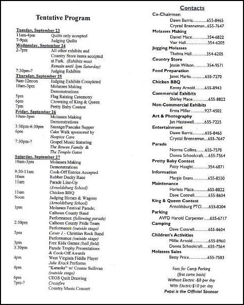 Crystal Brenneman (left) and Dawn Burris co-chairs for The 41st annual WV Molasses Festival starts today and continues through Saturday. The year's festival will include displays for county 4-H exhibits and lots of special music. Saturday program includes Jake Krack, Crossfire, the Calhoun County Band, and karaoke music. Friday evening is gospel music by the Bowen Family and the Templegates.