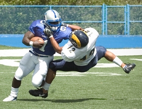 Jerry Seymour displays his running prowess Alex Amick answered Seymour's touchdowns 3 for 3 reaching the milestone of being only the seventh kicker in WVIAC history to attain the 200-point threshold.