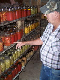 Helma and Tink's cellar holds some delights for cold This year, just for fun, he planted some tobacco. "I remember how they use to dry it and twist it," for human use, he said. He proudly displayed the canned products now housed in his dug cellar. "You don't have to worry about how this stuff will taste, and it doesn't have a bunch of stuff in it, natural," Helma said. Helma and Tink's house was built by Elsworth Kerby about 100 years ago, including the old cellar, which Tink gracefully adorns with lots of hanging flowers and plants. "It's a really old place," she said, "We feel right at home and hope to spend the rest of our days here." "If we can just keep those deer out of the garden, we'll be OK," Helma concluded.
