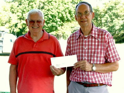 Little Kanawha RC & D member Marvin Stemple Little Kanawha Resource Conservation and Development Office representative, Marvin Stemple of Arnoldsburg gave four Calhoun groups some financial help for their projects yesterday; $1,000 to Tom Deegan, representing the Calhoun Solid Waste Authority; $750 to Linda McCartney, representing West Fork Community Action; $500 to Vier Hall, representing the Mt. Zion Community Park; and $500 to Bob Bonar, representing the Calhoun Historical Society.