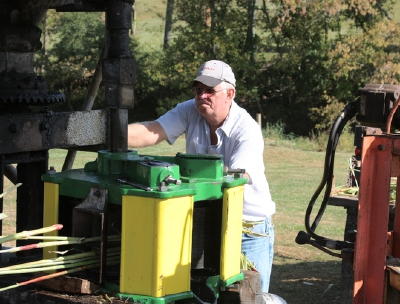 Dip Mace gears-up the squeezin' machine yesterday at the 41st annual WV Molasses Festival (Clyde Knotts Photo)