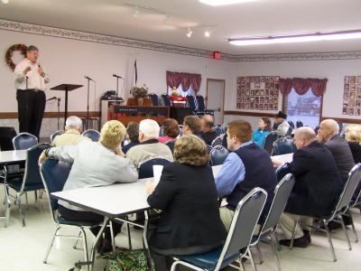 Republican chairman Gaylen Duskey reaches out to The Calhoun County Republican Executive Committee sponsored their Annual Lincoln Day Dinner last night at the Calhoun County Committee on Aging. Party chair Gaylen Duskey, acknowledging the wide support across party lines for the McCain-Palin ticket, called for voters to seriously consider state and local candidates. A number of state candidates, local county commission candidate Lyle Kerby and state Republican chair Dr. Doug McKinney attended the event. For more information contact Calhoun GOP chairman Gaylen Duskey at 354-7227 or by e-mail at calhoungop@citlink.net or by clicking www.calhoungop.org