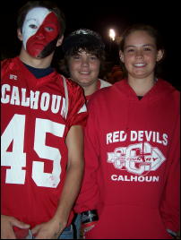 By Gaylen Duskey Two words: Randy Fluharty. That's all you need know about Calhoun's 33-14 pounding of South Harrison Friday night at Mount Zion. Two words: Randy Fluharty. Fluharty, a junior running back, carried the ball 25 times for 324 yards and five touchdowns. His touchdown runs were 11, 35, 62, 64 and 75 yards. His three fourth quarter touchdowns totally flattened a decent Hawks team after it had battled back to knot the score at 14-14 at the end of three. But then Hurricane Randy struck. First he had a 64-yard run at the 10:39 score to break the tie and give Calhoun a 21-14 lead it never relinquished. He followed that with his shortest scoring run of the night - 11 yards - to cap a short drive that put the Red Devils up by two touchdowns. His final tally - a 35-yard run - was the dagger threw the heart of the South Harrison team sending the Red Devils to 4-2 on the season and reviving their playoff hopes. Calhoun should have a rating of 5.66 and place it anywhere between 9 and 12 in the next ratings to be issued by the WVSSAC. The first three quarters of the game was a match of skills between Fluharty and South Harrison. His first touchdown run - a 62-yard gallop - gave Calhoun a 7-0 lead in the first quarter. The Red Devils maintained that as a halftime score when it turned South Harrison away on a fourth-and-goal from the three yard line. That defensive stand was one of the big turning points in the game as it never allowed South Harrison the opportunity to pull even in the first half or ahead when the Hawks got the two quick touchdowns in the late third and early fourth quarter. Fluharty's second touchdown of the game made it 14-0 in the third before the Hawks scored. This touchdown was his longest of the night as he rambled 75 yards pulling away from the slower Hawks all the way down the field. After that South Harrison, now 3-3, made a fight on things with a 10-yard scoring run by bullish back Vance Miller making it 14-7 before knotting things up on a four-yard run by Dillon Burnside.
