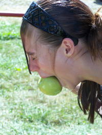 ![]() Girl is winner in apple challenge; band does some pickin' and grinnin'