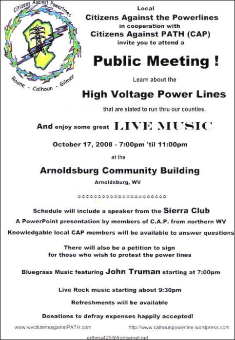 GIANT POWER LINE CROSSING REGION - Arnoldsburg Rally Tonight
