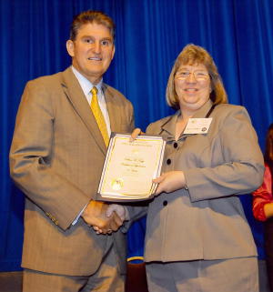 Submitted by Bob Edwards Glenville, WV - Four longtime members of the Glenville State College faculty and staff were among the West Virginia public employees who were honored at the Governor's Awards Ceremony in Charleston during Public Service Recognition Week. The ceremony took place in the Cultural Center at the Capitol Complex on Thursday, October 2nd, followed by a reception in the Upper Rotunda of the Capitol Building. Almost seven hundred West Virginia public employees were recognized for service of thirty years or more to the State. "Without our outstanding public employees, West Virginia would be lost. It is their unwavering commitment and dedication, which allow the State to operate smoothly and with efficiency," said Governor Joe Manchin. Debbie A. Nagy, GSC Director of Alumni Affairs and Special Assistant to the President, was honored for thirty-five years of service to the State. Also recognized, but unable to attend the ceremony were: Glenville State College Professor Emeritus James J. Hinter, who retired in the fall of 2007 after thirty-five years of service, GSC Professor Emeritus Marty E. Garrett, who retired in the spring of 2008 after thirty years of service, and GSC Physical Plant Manager I Timothy Marks, who also has thirty years of service. Nagy, Hinter, Garrett, and Marks also received Glenville State College Service Awards earlier this fall.