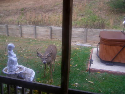 This buck came close to the house to munch on the remaining Hostas and to check out the hot tub, at the Rick and Sharon Pitts residence