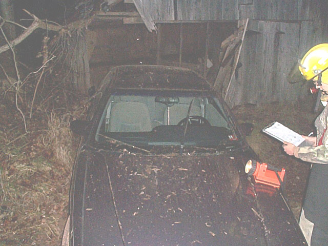 ![]() A Chevy Lumina spun out of control on rain-slick Millstone Hill about 9:30 p.m. Monday, crashing into a garage along Route 16. Mike Hall was reported to be the driver of the car. He was uninjured. The accident happened near the top of the hill, the auto apparently going into a spin with its rear end striking the garage. Calhoun EMS and the Arnoldsburg VFD responded to the call.