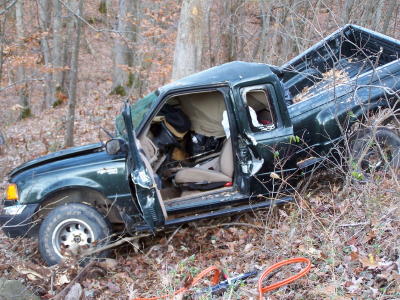 An 18-year-old Big Springs youth was critically injured early today when his truck left the highway, plunged over an embankment and struck a tree. Sources indicated the injured youth lives in Gilmer County. The youth was taken to Minnie Hamilton Health Center by Calhoun EMS and was then transfered to Charleston Area Medical Center by HealthNet. Officer Bob Groves, who called 911 for assistance at 7:20 a.m., indicated the accident could have happened much earlier, going unnoticed along Rt. 5 on Nighcut Hill, a few miles west of Grantsville. Temperatures dropped into the low 20s during the night. The Grantsville Volunteer Fire Department responded to extract the driver from the vehicle. Sheriff Carl Ballengee is investigating.