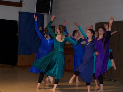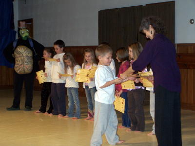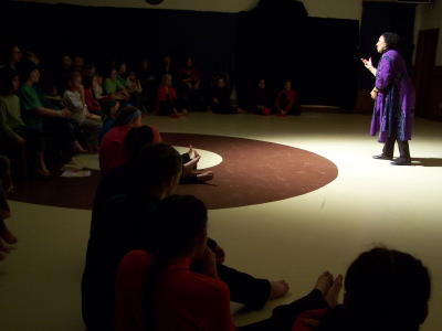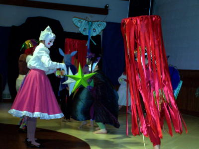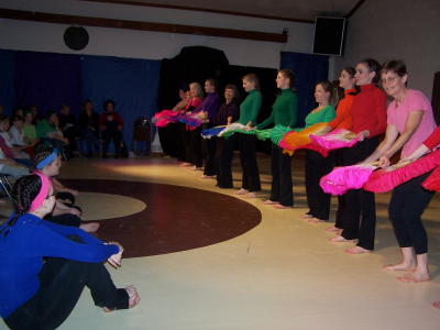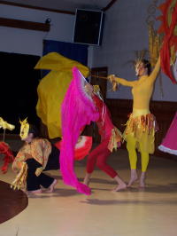 Colorful and energetic performers delight the audience The performance was a colorful, energetic and heartfelt evening, full of music, song, dance, storytelling and masks. There was the traditional re-appearance of the Heartwood Turtle. This year the celebration recognized five students who will be graduating from high school in 2009. Four of them, Rebekah Amorosi, Jessi Cosgrove, Megan Ackley and Niki Liles practically grew up at Heartwood, starting their creative endeavors at age 10. The fifth, Kendra Lipscomb, is celebrating her first year with Heartwood. The evening was concluded by a spectacular finale - "Dancing for You." Binder said "We salute all our wonderful students, parents and guardians who faithfully committed their time to this year's fall program."