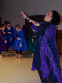 By Bob Weaver The 16th annual December Celebration this past weekend at Heartwood in the Hills continued to recognize the "artist in every person," featuring the performances of Calhoun and regional students. Returning was storyteller, artist, musician, dancer and performer Ilene Evans, who is a guest faculty member at Heartwood. Artistic Director Jude Binder recalled the first celebration in 1991, an informal gathering with the audience sitting in a small group, mostly family and friends, close to the performers. "Tonight is still a showcase of student and faculty work, but a lot has changed in 16 years. Family and friends are now joined by people from across West Virginia who come yearly to enjoy the show," Binder said.