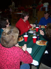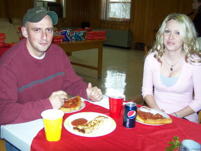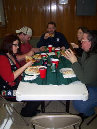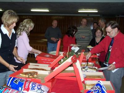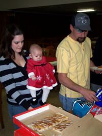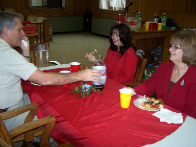 County Commissioner Kevin Helmick and wife Jennifer Calhoun County employees and elected officials held their annual Christmas Dinner and gift exchange at the courthouse Thursday, with the covered dish event being substituted with pizza.