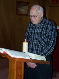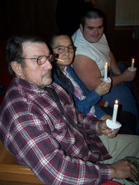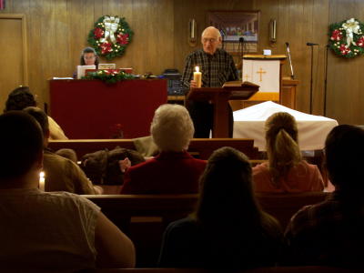 ![]() "Let your light shine before men ..." A candlelight and communion service was held at the Chapel Baptist Church in the Nobe Community Tuesday evening with Pastor Lorous Roberts leading the service.