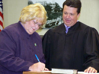 Judge J.D. Beane of the 4th Judicial Circuit Sharon Lynch was sworn-in as District 2 representative of the Parkersburg City Council on Tuesday, January 6th. Sharon is a graduate of Calhoun High School and has resided in Parkersburg for many years. She is the daughter of Ernie Hartshorn of Grantsville and the late Mary Helen Hartshorn.