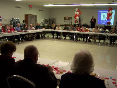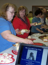 ![]() Special speaker Jennifer Propst Miller Harriet Dial, of the West Virginia Breast and Cervical Cancer Screening Program [WV BCCSP] and Shelli May of the American Cancer Society made presentations. While Barb McKown of Minnie Hamilton Health System recognized cancer survivors, special recognition was given Clarence West of Spencer, a cancer survivor for 33 years and Sally Hashman of Mt. Zion, a cancer survivor for 32 years.