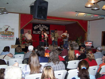 One of West Virginia's up and coming bluegrass bands packed the Bear Fork Trading Post Saturday night. "No One You Know" band members come from all over the Mountain State, each bring a unique genre of play to the performance. Don Anderson, originally from Jackson County, resides in Clarksburg and sings lead and plays the bass and hosts a bluegrass radio show "On the Road with Don Anderson" on 104.9 WPDX. The Sunday evening broadcast showcases both professional and local Bluegrass bands. Ramie Bennett, most recently a member of "Buck and Company," lives in Mill Creek and plays the banjo, and sings both lead and harmony vocals. His style of banjo picking will leave you on the edge of your seat. Lance Gainer from Williamstown supplies both guitar and vocals to the band. His guitar picking abilities are in a range of their own. Bruce Jones, a native to Calhoun County, now lives in Kingwood, is a member of another Bluegrass band "Whittaker Station." Bruce plays the resophonic guitar with the band, but is capable of picking many others. Rachel Burge, the bands "leading lady" was raised in Summersville, and currently calls Procious in Clay County her home. Rachel is a graduate of Glenville State University and holds a degree in Music Education. She also plays with the popular band band "Mountain Fury."