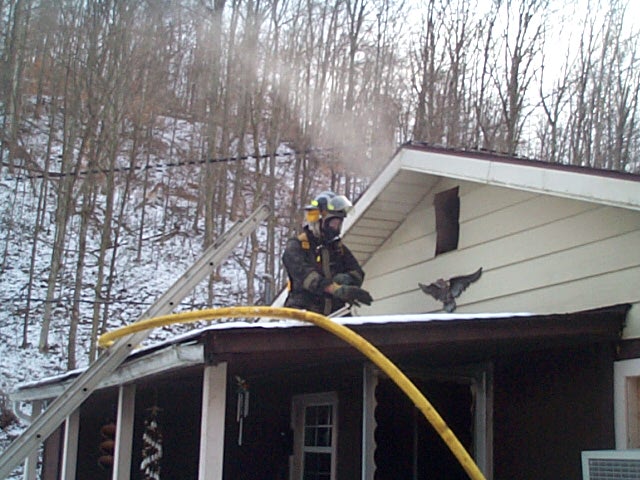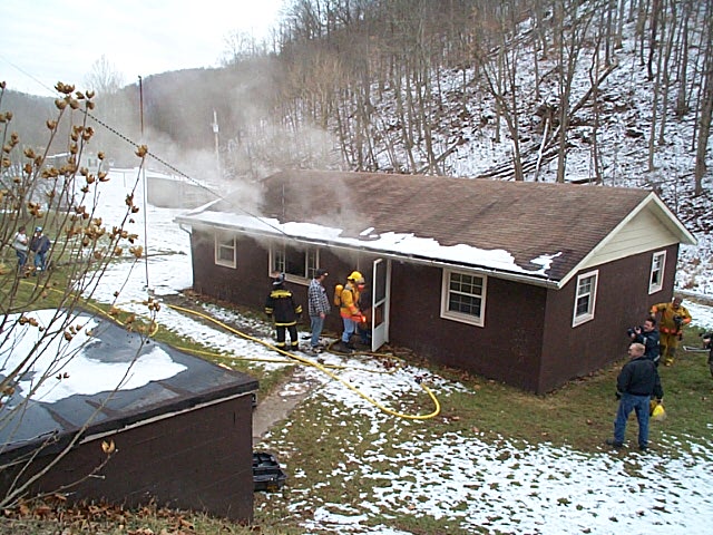 | By Bob Weaver (4 p.m. Sunday) Ada Hosey, 78, who lives by herself on Big Root Road, called 911 to report her house was on fire. She was able to get to a porch, where she was met by grandson Steve Hosey. She was uninjured, according to a family spokesperson. Mrs. Hosey, who suffers from emphysema, told her family the fire started around her oxygen generator. The Grantsville Volunteer Fire Department quickly brought the blaze under control, although there was extensive fire damage to the living room area, with heat, smoke and water damage to much of the house. "It was a really hot fire," commented a fireman. Fireman Keith Smith reported several oxygen tanks in the dwelling, none of which exploded. "The oxygen could have caused some real problems," he said. The Arnoldsburg VFD was also summoned for a back-up tanker, but their response was canceled. Calhoun EMS also went to the scene. Mrs. Hosey, widow of the late Joe Hosey, has lived in the house for about two years, one mile off State Route 5.