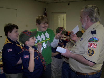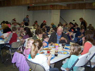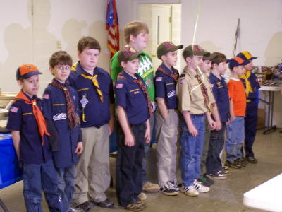 Scouts, parents, and leaders enjoy a banquet dinner Cub Scout pack #436 and Boy Scouts #39 attended the dinner, which recognized long-time county scoutmaster Kitty Wilson, who has given over 50 years of service. Scouts were given lots of prizes, both cash and gifts, provided by area merchants and supporters of the scouting effort.