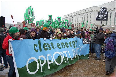 ![]() Protest against use of coal in America's energy future A recent University of Massachusetts study found investing in clean energy projects like wind power and mass transit creates three to four times more jobs than the same expenditure on the coal industry. The wind power sector has grown to employ more Americans than coal mining as demand for clean energy has jumped over the past decade. "We think that coal workers should get preference for those new jobs," said Mary Wildfire of Spencer in Roane County, who often volunteers for the Huntington-based Ohio Valley Environmental Coalition, which organizes for an end to mountaintop removal coal mining and for a just transition into a new energy era. Robin Wilson, also of Spencer said, "Our society faces a choice between creating sustainable energy or facing economic, social, and environmental collapse." "People are growing in their awareness of the gravity of global warming, but they are unaware of the amount of suffering caused by nations fighting to control fossil fuel energy. The same money being spent on weapons and training to kill could be used to free us from our addiction to coal and oil," she said. A letter of invitation to the protest at the Capitol signed by Dr. Judy Bonds of Coal River Mountain Watch, which is fighting to preserve communities in the southern coalfields, said, "It's way past time for civil disobedience to stop mountaintop removal and other coal abuses and to move quickly toward clean, renewable energy sources." "For over a century, our Appalachian people and communities have been crushed, flooded and poisoned as a result of the country's dangerous and outdated reliance on coal," Bonds said. For more information, see and