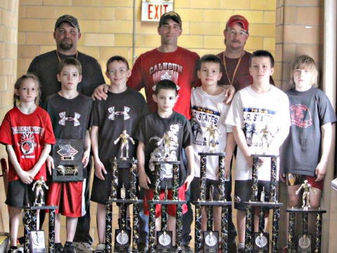 Front (L-R) Katie Jones, Housten McCune, Allen Metheney, Back (L-R) Coaches, Jimmy McCune, Brian Ritchie, Chris Metheney Submitted by Kristie Ritchie Calhoun Youth Wrestlers competed in the WV Jr. State Wrestling Tournament held March 7th and 8th in Parkersburg. Calhoun team results: Champions, Cole Ritchie and Casey Ritchie; Second Place winners were, Housten McCune, Dalton McCune and Allen Metheney; Third Place winner, Jacob Monn; Fourth Place winners, Levi Jarvis, Katie Jones; Fifth Place winner was Cody Starcher.
