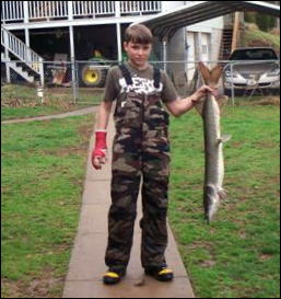 Cameron Sampson caught this nearly 41 inch Musky, Sunday in the Little Kanawha River at Russett, while fishing with his buddy Nathan Peck
