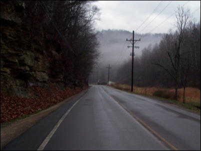 Fog settles on Phillip's Run Saturday evening, following a day of drizzle