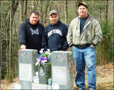 ![]() Old friends, Scott McCartney, Steve Reynolds and Jim Gregory visited their not forgotten "brothers," yesterday, sharing stories that took them back 20 years or more, the young Hickman cousins were killed in a car accident March 31, 1989. Daniel was the son of Bronson and Alice Hickman of Nobe, Calhoun County - Lucas was the son of Phillip and Micki Hickman of Gilboa, Nicholas County