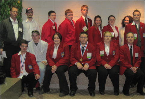 Second Row (L-R) Mr. Roger Sweppenhiser, Advisor, Derek The Calhoun-Gilmer Career Center SkillsUSA club sent twelve members to the Academy of Careers and Technology in Beckley, WV for the annual West Virginia SkillsUSA competitions on On March 27 and 28. Over 500 students competed in 36 different contests during the two-day event. Students attending the competition were Weston Hershey, Brian White, Sharlean King, Brandon Nelson, Stephanie Wood, Derek Singleton, Daniel Husk, Brian Howes, Stanley McLaughlin, Brittany Delaney, Autumn Bloom and Keith Burgess. Brittany DeLaney, a student in the ProStart program received a Bronze Medal for placing third in the Prepared Speech Leadership contest. According to her instructor, Annette Benson, "I was particularly impressed with the success of Brittany. She had just the right combination of skill, determination, and talent. It showed in her achievement. I am proud of the work that all my students put into the competition". Weston Hershey, a student in the Building Construction program received a Bronze Medal for placing third in the Carpentry Skills contest. According to his instructor, Roger Sweppenhiser, "Weston has shown remarkable motivation and is an inspiration to the class". Brandon Nelson, a student in the Networking Technologies program received a Gold Medal for placing first in the Technical Computer Applications contest. As a 1st place winner, Brandon will be accompanying the rest of the state's 1st place winners to Kansas City, Missouri for the National SkillsUSA competition in June. Nelson's instructor, Zane Gherke, said, "Brandon worked hard preparing for the competition. To be able to represent not only the career center and Calhoun and Gilmer Counties, but the State of West Virginia is a great honor." The cost to send Brandon to the national competition will be approximately $600. Calhoun-Gilmer Career Center is accepting donations to help with the expenditure of the trip. Anyone wishing to help Brandon may call the Career Center at 304-354-6151. "We are proud of all of our students", said Mr. John Bennett, Director of Calhoun-Gilmer Career Center. "The quality of instruction at the career center lends itself to the dedication of the faculty and staff."