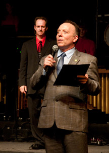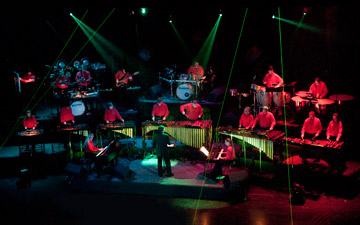 | By Drew Moody Glenville State College's percussion ensemble, directed by John McKinney, has earned a reputation for playing to sold out crowds at the Fine Arts Center. The two-night performance series has become a much anticipated annual spring event. Randall Reid-Smith, WV Commissioner of Culture and History, was in attendance Friday night and surprised the crowd by making a short announcement near the end of the show. "You're absolutely amazing," Reid-Smith told the group. "You literally take my breath away." He invited the percussion ensemble to an all expense paid trip to play in Charleston next year. Reid-Smith also made McKinney an official member of the WV Order of Arts and Letters honoring his years of dedication and performance excellence.