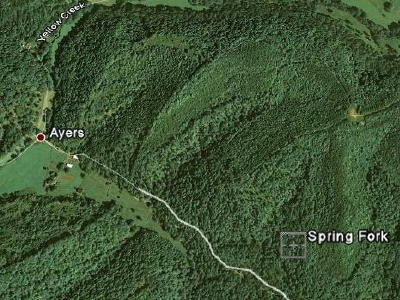 Spring Fork is a remote rural road between Yellow Map courtesy of earth.google.com