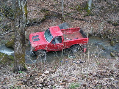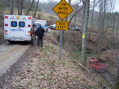 ![]() Truck plunges into steep hollow on Spring Fork, injuring two