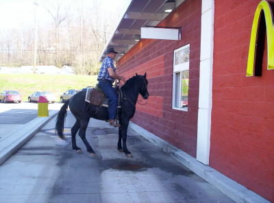 ![]() Vietnam Vet, Melvin Morrison (above) took his Tennessee Walker through the Ellenboro McDonald's drive-threw, where the horse was treated with carrots.