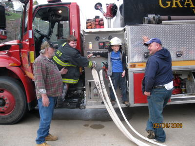 ![]() L-R - Paul Funk, Houston Bennett, Matthew Chase and "Boston" Cub Scouts from Pack #436 took their first ride on a fire truck recently, thanks to Steve "Boston" Heath of the Grantsville Volunteer Fire Department. The boys really enjoyed the fun, learning experience. Cub Scout Pack #436 is under the direction of Scout Master Paul Funk.