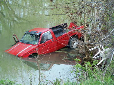 TRUCK PLUNGES INTO WEST FORK AT ARNOLDSBURG |